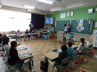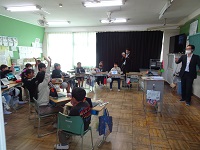 同じ日に6年生は深谷市教育委員会教育長の片桐先生との交流会「ふっかEミーティング」に参加しました。元教員でもあり、校長先生でもあった片桐先生の授業に授業をしていただき、