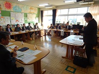 子どもたちが健康診断などを受けている間に保護者の方々には教育委員会からの説明や人権講話、学校歯科医の先生から歯科講話をしていただき、「親の学習」で保護者同士の交流を図りました。