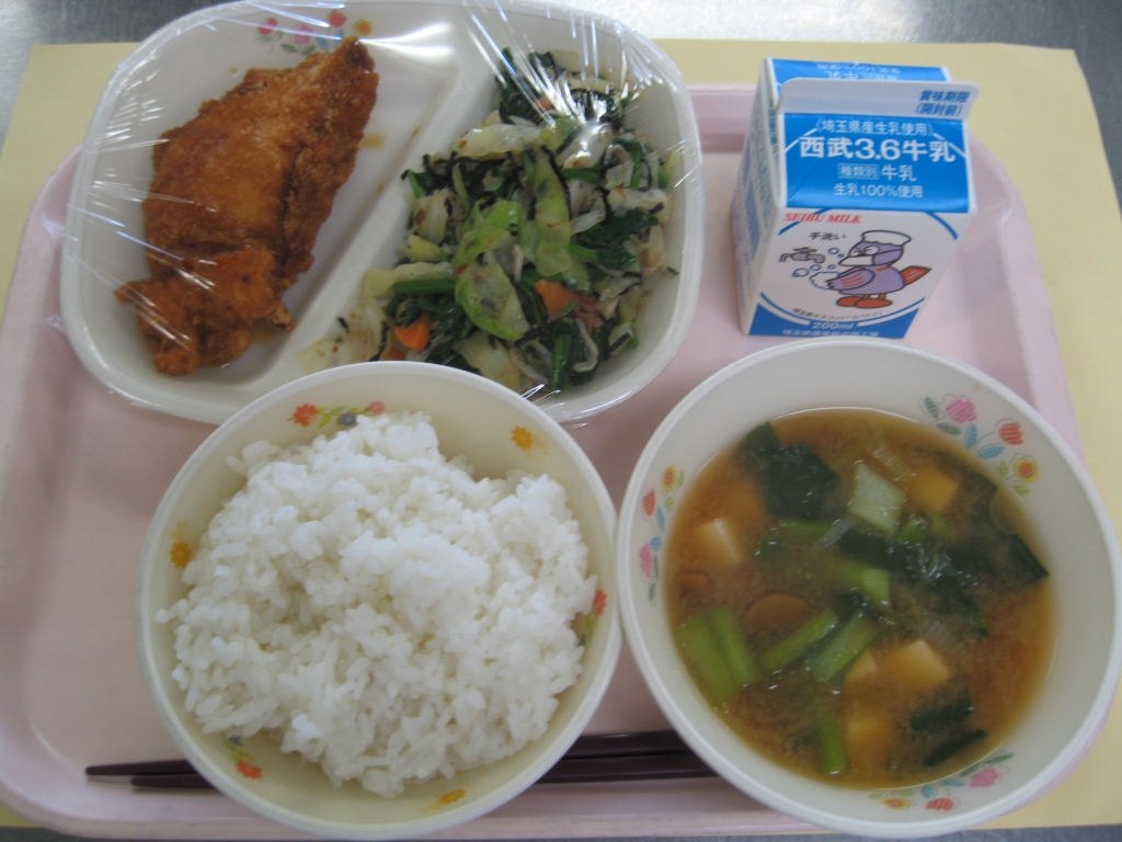 牛乳・カツ丼・磯の香和え・なめこ汁