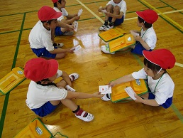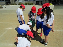 1年生は学校たんけんや生活科校外学習で2年生とグループ活動をします。今日は、グループをつくり、2年生と仲よくなる会しました。自己紹介をして名刺を渡し、握手をしてもらいました。名前と顔を覚えたら、みんなで外遊びをして交流をしました。