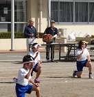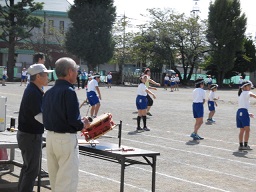 本日の2時間目は全校練習を行いました。保存会のみなさんが来校していただき本番と同じ隊形で入念に練習しました。終わるごとに保存会のみなさんから「じょうず」といって拍手をいただきました。伝統文化でもあるこの種目、本番までにさらに高めたいものです。保存会のみなさんありがとうございました。当日もよろしくお願いいたします。