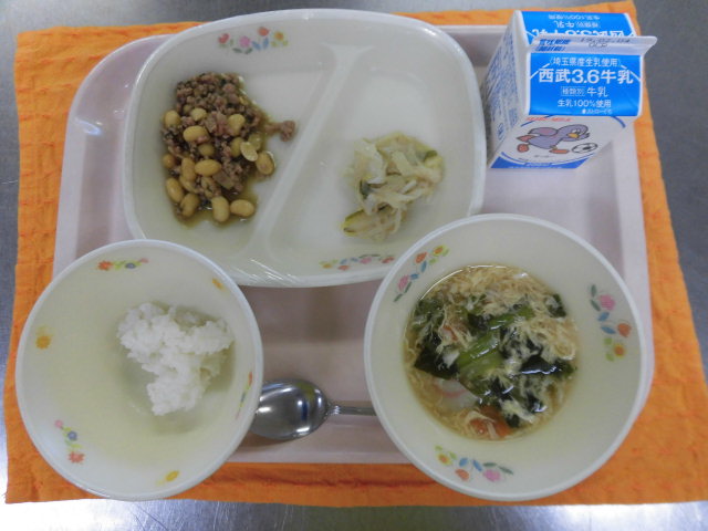 牛乳・ソイ丼・ねぎぬた・かき玉汁