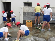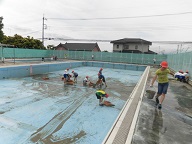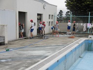 今年度は6月6日(木)がプール開きです。プール排水をして、昨日は放課後に先生方が取りかかり、本日は3年生以上と職員で実施します。各学年、児童と先生、用務員さんでとても丁寧に行われました。例年に比べるとブールの汚れも少なかったと言っていました。ありがとうございました。