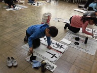書き初め練習がスタートしました。1/8に行われた校内での書き初め制作会での作品をもとに全職員で学校代表作品を決めました。学校代表の児童のみなさんは昨日から放課後練習(4時40分下校)が始まりました。来週の金曜日までの短い期間ですが代表にふさわしい作品作りを職員一同指導していきたいと思います。よろしくお願いします。なお、代表児童は次の通りです。