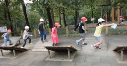 森林公園では、キッズドームとアスレチックで思いきり身体を動かしました。グループの友だちとなかよく声を掛け合いながら楽しく遊ぶことができました。