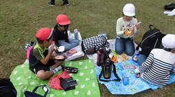 お家の人に作っていただいたおいしいお弁当を 広場で食べました。