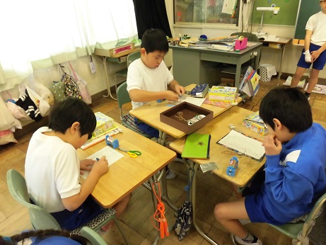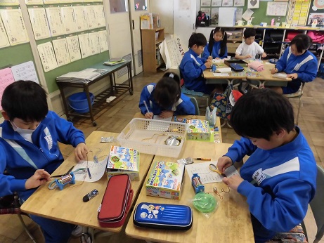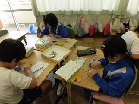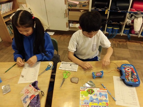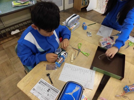 理科の学習で、電池を使い、明かりがつくものと明かりがつかない物の実験をしました。