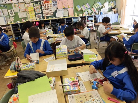 明かりがつくと歓声があがり、一生懸命取り組んでいました。