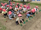 生活科の学習で野菜の苗を植えました。今年は自分で野菜を選び、美味しい野菜ができるように、毎日毎日お世話をします。その他、学年の畑にもたくさんの野菜を植えました。