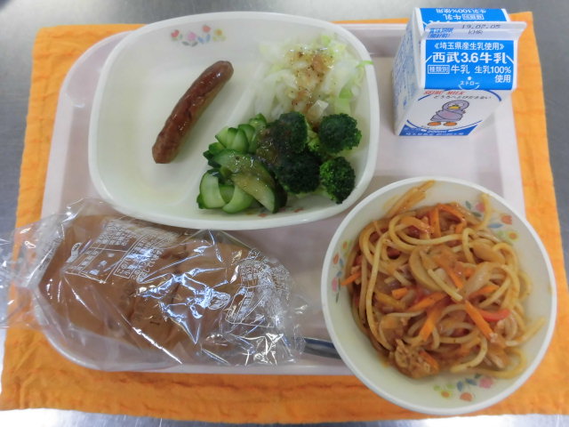 ★牛乳・トマトクリームジェノバ風・焼きウインナー・グリーンサラダ★