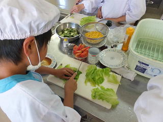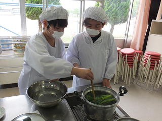 ゆでる、切るなど、楽しく安全に実習を行っています!
