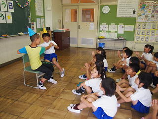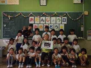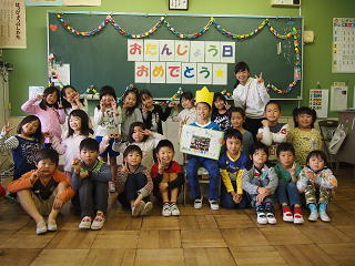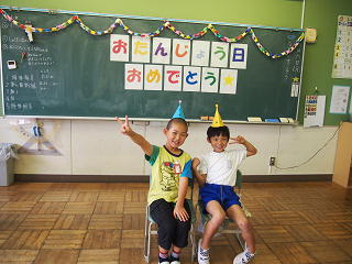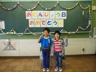 2年1組では、毎月1ヶ月の最後にその月のお誕生日の子を