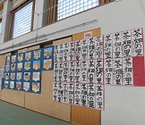 1/19土20日の2日間にわたり公民館の体育館で展示されました。これまでとても苦労して作り上げた作品を地域の方に見ていただきました。けやき学級、1年、2年はコンピュータ作品、3年、4年、6年は書き初め、5年は絵画(誠之堂・清風亭)と全員の作品が展示されていました。
