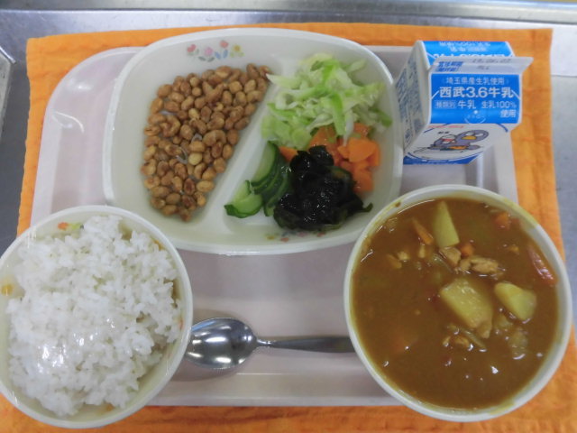 ★牛乳・チキンカレー・海草サラダ・大豆のカリカリ揚げ★