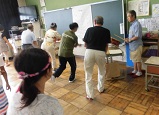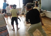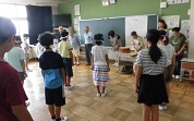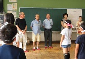 昨日4日の5時間目、5年生はが室にて万作踊りの練習をしました。内ヶ島万作踊り保存会のみなさん8名の方が来校して頂きとてもていねいにご指導頂きました。8/3土の大寄地区納涼祭に引き続き、今月の運動会では全校で踊ります。それまでに5年生は下級生に教える大事な役割があるため練習しました。覚えて踊れる人が増えてきました。今回はとても細かいところまでご指導いただき子どもたちもとても張り切って練習しました。