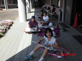 どの子も、自分の「お気に入り」の場所を見つけて、熱心にえん筆を動かしていました。