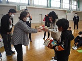 4年生が代表して、ご家庭から集めたティッシュ、タオルをお渡しました。そのティッシュ・タオルには、一つ一つに子供たちが、メッセージを入れてお渡ししました。愛光園さんからは、可愛くて素敵な図書を頂戴しました。本日は、ご来校いただきました愛光園の皆様、深谷市社会福祉協議会の皆様、ありがとうございました。