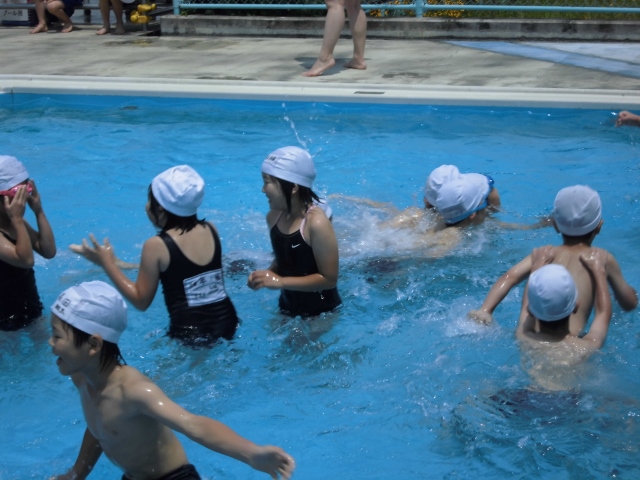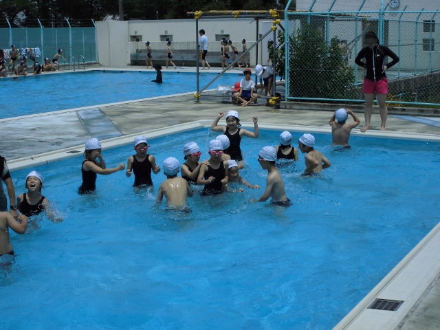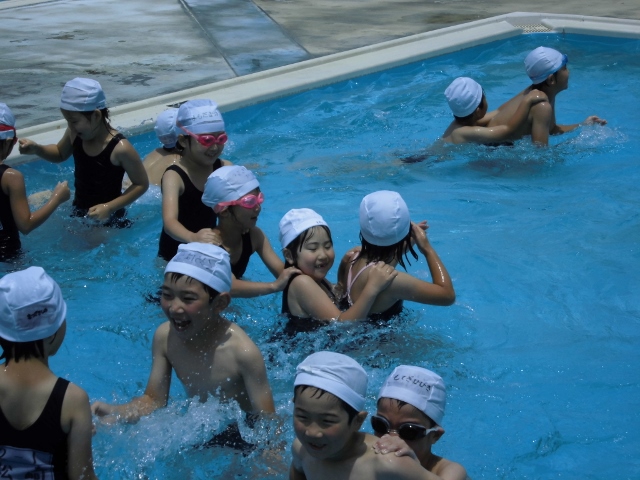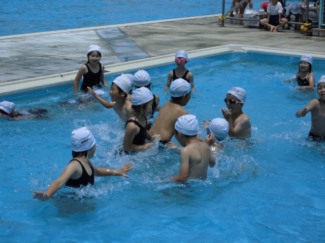今日はたくさんの学年が水泳授業に取り組みました。2年生も他の学年に負けず、みんなで泳ぐことができました。まだ、浅い方のプールですが、もうじき深い方のプールにいきます。楽しみです。