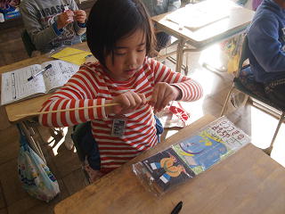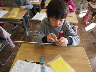 竹ひごにまきつけるのが大変でした。