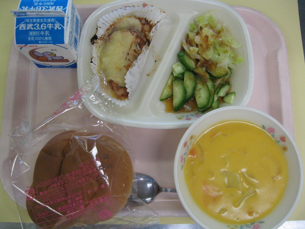 パンと相性の良いカボチャのポタージュです。みんな残さず食べてくれました!