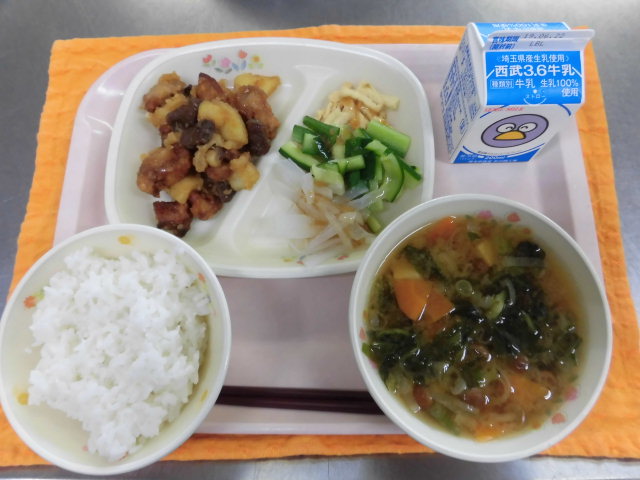 ★牛乳・豚肉とレバーのごまだれ・パリパリサラダ・なめこ汁★
