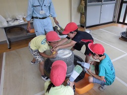 昔使われていた道具の説明や実際に体験をしました。