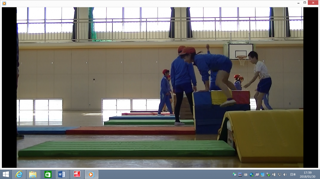 本日から3日間、深谷アスリートクラブ事業として伊佐山先生に体育のとび箱の授業をしていただきます。今日は、伊佐山先生から開脚跳びや台上前転のコツを教えていただき、積極的に練習に取り組みました。
