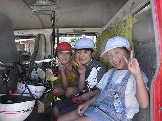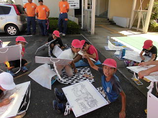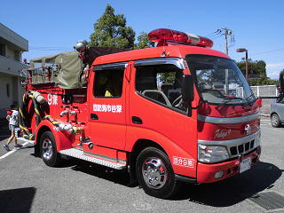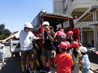 消防分団の方にお世話になり、かっこいい消防自動車をかくことができました。