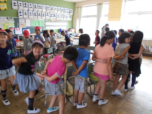 レク係さんが休み時間にクラス全員で遊ぶ日を作ってくれています。いつもは子どもたちに人気の「おにっご」が多いのですが今日は天気がはっきりしませんので教室で遊べる内容を考えてく