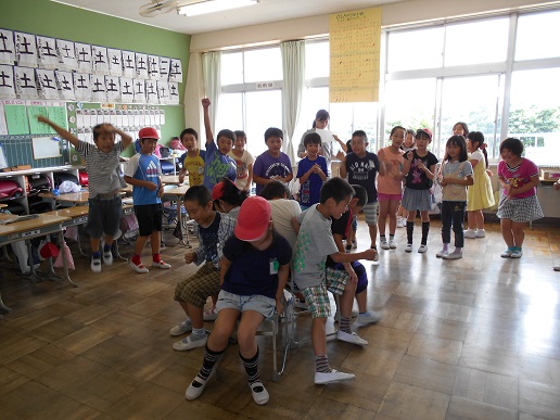 まずは、椅子取りゲーム。曲はできたばかりの学級歌。