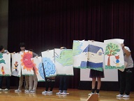 本日は8時15分から図書集会が行われましたるはじめに図書委員の読み聞かせ『ねずみのよめいり』でした。図書委員による読み聞かせはとても良かったです。ゆっくりと分かりやすく、手作りの絵もあり、そして何より委員さんの立っている姿勢が良かったです。劇も良くできていました。