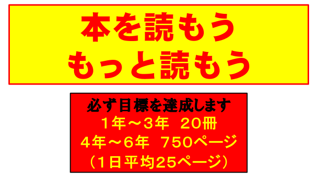 2学期は「なかみ」をつくろうですが、読書はその中身にとても深く関係します。心と頭の栄養であり、読書をすることで思いやりの心や学力の向上につながります。実りある2学期にするためにも「本を読もうもっと読もう」そして目標を達成しましょう。一つ一つ前進です。