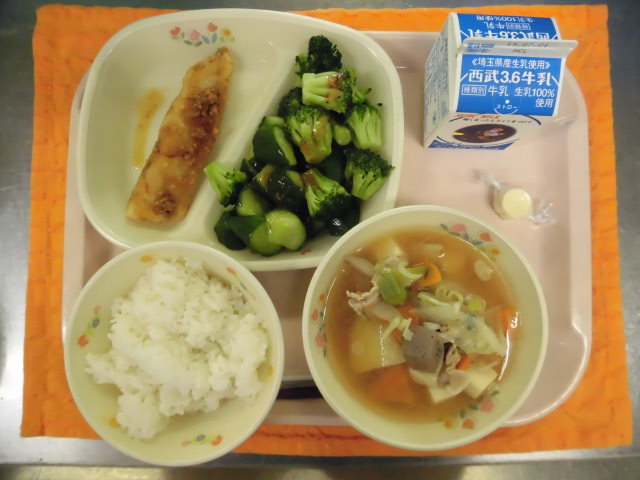 ★牛乳・ごはん・白身魚の南蛮漬け・温野菜・豚汁・チーズで鉄分★