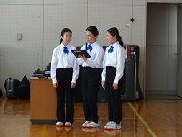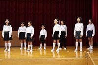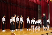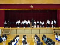 そんな4年生に向けて9日(木)の業前に壮行会を実施しました。本番と同じ衣装・隊形で全校児童の前で歌声を披露しました。その美しいこと!聴き惚れました。2曲終わった後の大きな拍手を胸に、本番でも精一杯頑張ってきてほしいと思います。