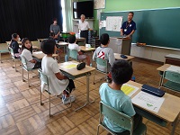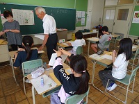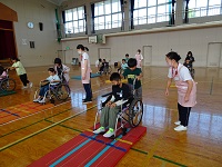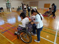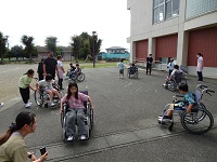 また、4年生は今総合的な学習の時間に福祉について学んでいます。アイマスク体験の授業に続いて、10日(金)に特別養護老人施設愛光園の皆さんと社会福祉協議会の皆さんにご指導いただき、車いす体験を行いました。2人1組で乗って押しての操作体験や外で自力操作の体験などを行っていました。どちらの操作も難しく、その大変さを味わっていました。