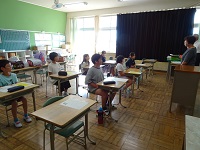始業式では、美しい歌声での校歌斉唱のあとに、3・5年生の代表児童が1学期のがんばりと2学期のがんばりたいことを読み上げました。校長先生からは、校長先生の夏休みの思い出や、いつも子どもたちを見守ってくださっている地域の方々の新聞の投稿記事を紹介していただきました。大寄小の子どもたちは、家の人はもちろんのこと、地域の方々からも愛され、その成長を見守られていることを確認できました。