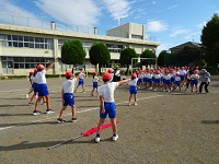 8日(水)の業前運動では、応援合戦の練習と全校種目の大玉送りの練習を行いました。昼休みなどには高学年を中心に応援やジャンボリミッキーの自主練習を行っています。9日(木)の清掃の時間には縦割りでの石拾いを行いました。同じ日の6時間目には1回目の係打合せを行いました。