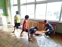 夏休み最終日の学校は、ひっそりと静まり返っていますが、教室は明日の始業式、子どもたちを迎える準備はばっちりです。