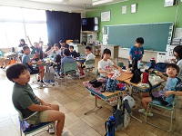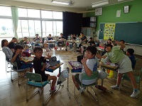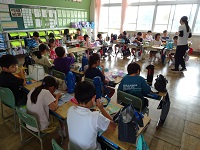 各学級では、夏休みの課題の提出や思い出ビンゴ、絵日記の紹介で盛り上がっていました。係活動など2学期の役割分担をしている学級もありました。