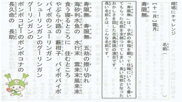 11月の暗唱チャレンジ「寿限無じゅげむ」