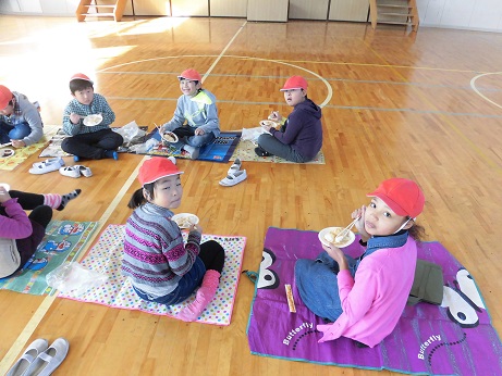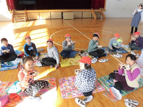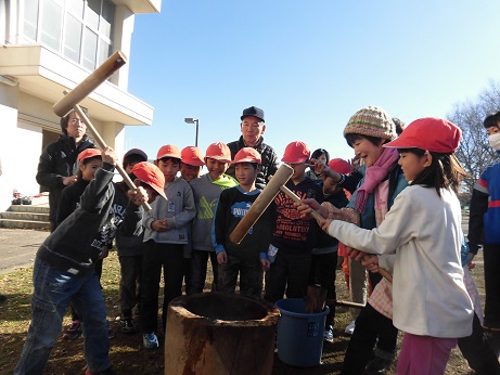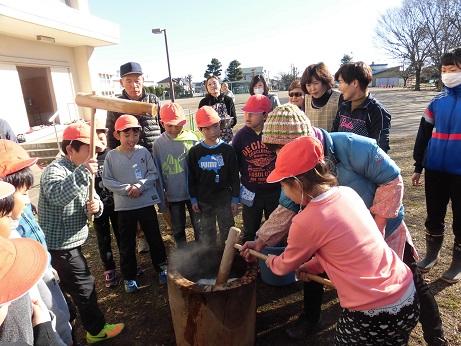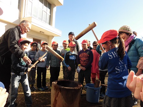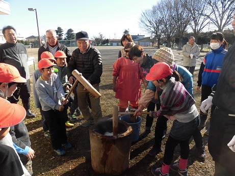 かけ声をかけ上手に餅をつくことができました。