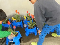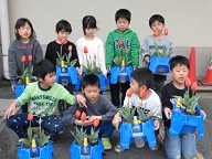 昨日29日(金)、市の人権政策課よりいただいたチューリップの球根を一人一人が大切に育てようやく花を咲かせてくれました。それを記念して来校していた児童と一緒に記念写真を撮りました。これまでありがとうございました。