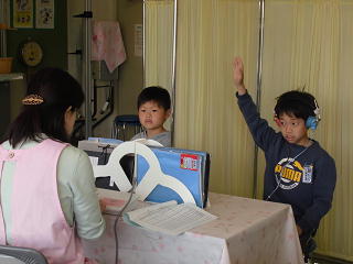 保健室で聴力検査をしました。