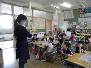 はじめに、栄養士の先生に、トウモロコシのことを教えていただきました。