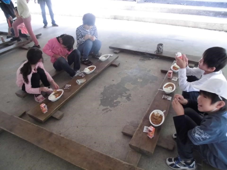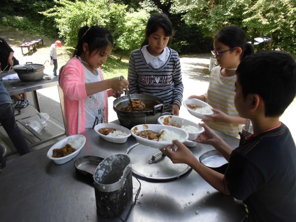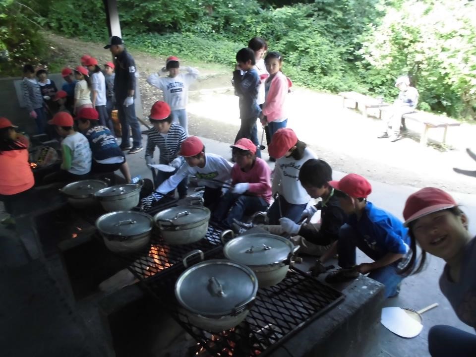 自分たちで、火おこしをしたり食材を切ったりなど班で協力して美味しいカレーができました。飯ごうでお米を炊くのも上手にできていました。