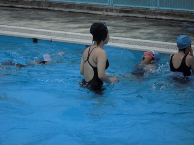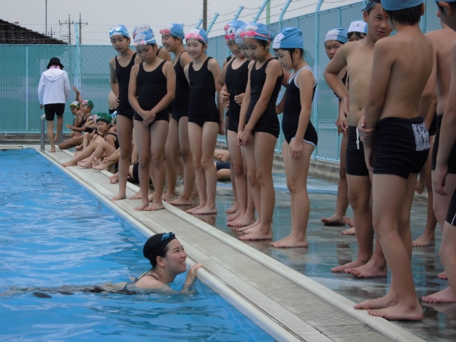 今日は、深谷アスリートクラブ事業の水泳指導を日でした。。水泳の達人、宮沢先生から平泳ぎの指導をたっぷり受けました。子どもたちは、先生の足の動きに「うま~い」の歓声をあげていました。その後、先生から足、手のバランスなどについて直接指導されました。