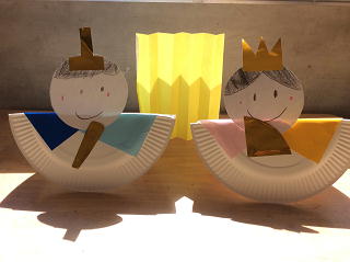 紙皿を使い、ゆらゆらゆれる男雛と女雛です。