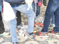 本日はアルミ缶の回収日でした。登校時に児童の持ってきたアルミ缶を小さくして貯めておくものです。資源回収同様にみなさんのために使っています。次回は12/20(木)です。一人一缶でも142個集まります。だれにでもできるボランティア活動の一つです。