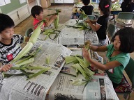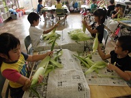 「とうもろこしの皮むき」に挑戦!給食でおいしくいただきました。