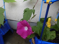 アサガオも生長し、花が咲き始めました。